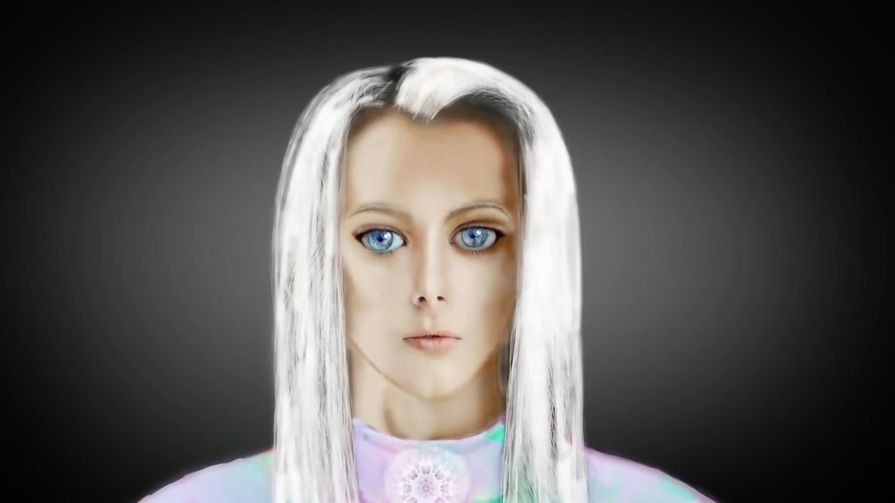 Acum, această imagine de aici, reprezintă o altă ființă cu aspect uman. O ființă cu aspect foarte asiatic, pielea lor era cu o nuanță un pic mai portocalie, și aveau acești ochi albaștrii ca de pisică, în care irisul ocupa aproape tot globul ocular, pe care-l puteai vedea ... I-am văzut interacționând destul de mult cu celelalte grupuri umane, și păreau destul de distanță față de grupurile de tip insectoid. Deci părea să existe vre-un fel de prăpastie între acele două grupuri, cel mai probabil o dispută legată de aceste programe genetice.